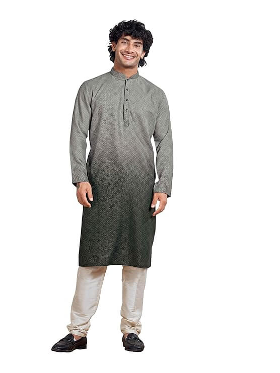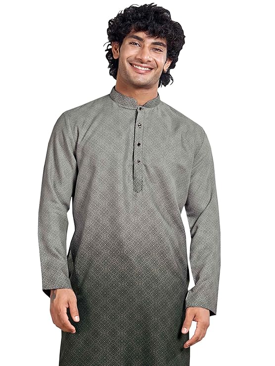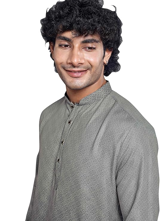 - Elegant Bandhgala: Enhanced with a classic bandhgala (Nehru) collar and antique buttons. || Accessorize: Elevate your style with a metallic watch or a simple bracelet.