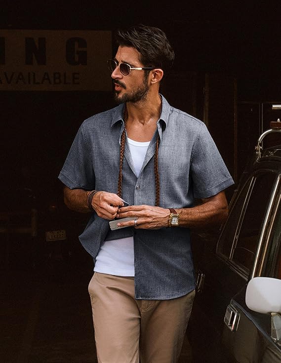 • Stylish Design: This short-sleeve shirt features a classic collar and melange texture. The “H” silhouette offers a fit that is both comfortable and non-restrictive, making it ideal for home, work commutes, ceremonies, beach vacations, camping, or party gatherings.