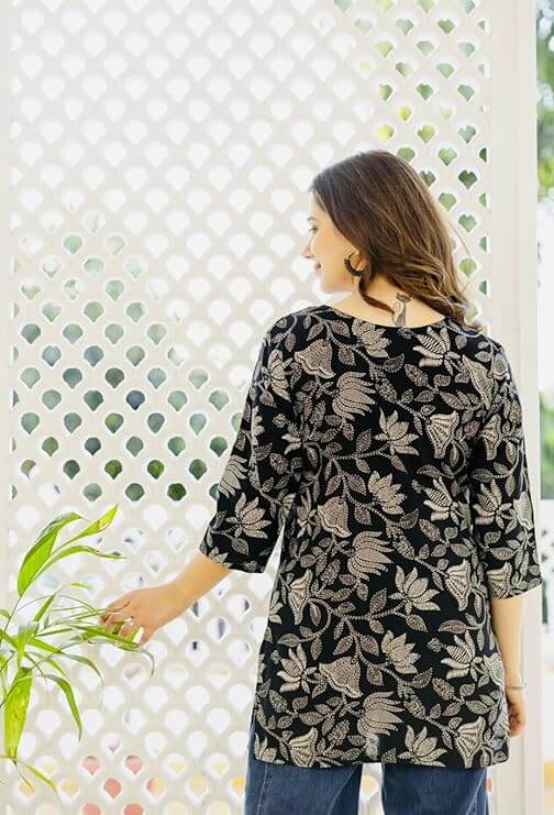 - STYLE: Elegant V-neck tunic top featuring a striking black and white floral print pattern for a sophisticated look.