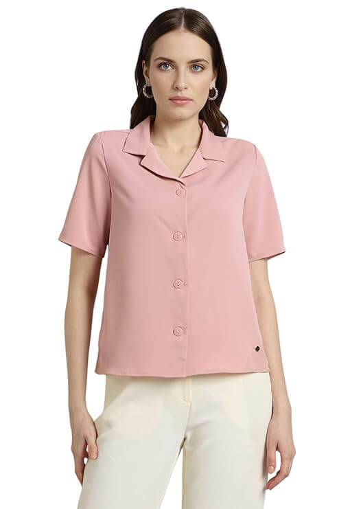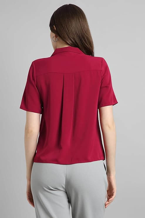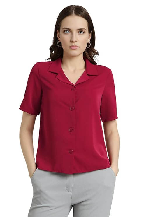 Women Silk Regular Fit Solid Half Sleeve Casual Shirt